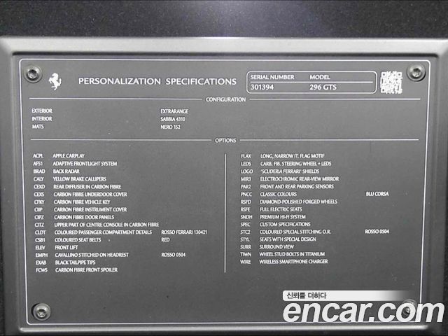 Ferrari 296 из Кореи Encar